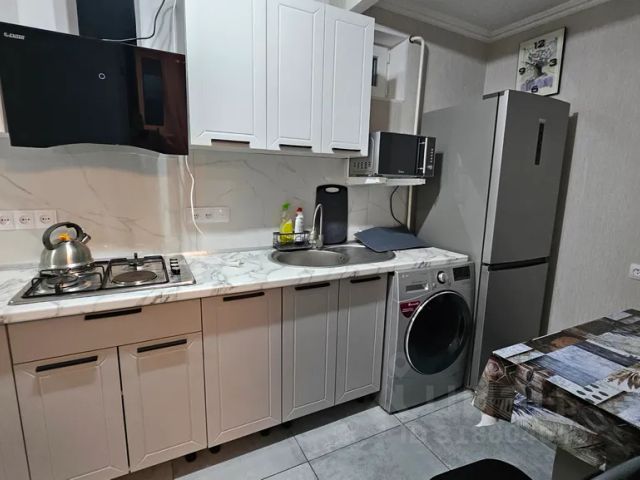 Кухня укомплектована всем необходимым: посудой, качественными столовыми приборами, холодильником, электрочайником, тостером, кофе-машиной, электрической варочной поверхностью, мощной вытяжкой, посудомоечной машиной, бойлером; лестница на второй этаж.