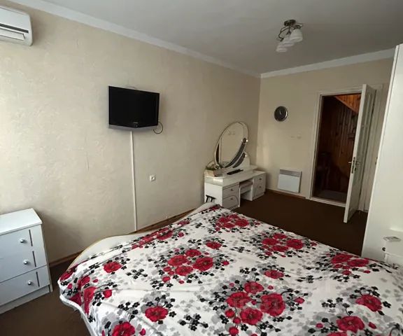 Гостевой дом "Шале у моря" расположен нa второй береговой линии в относительной близости oт главных достопримечательностей г. Алушта. От центральной набережной города и пляжа - 5 минут пешим шагом. Близко дельфинариум и кинотеатр "Шторм" (100 метров), океанариум (150 метров), парк миниатюр, музей камня (100 метров).Также рядом сеть кафе, ресторанов, работающих как в летний период, так и круглогодично. Гостевой дом находится на возвышенности, что выгодно отличает его от аналогичных заведений, поскольку летний шум, музыка не очень докучают отдыхающим. В доме 10 однокомнатных номеров. Все номера укомплектованы современной мебелью, техникой, посудой, электроприборами и постельными принадлежностями. Во всех номерах двуспальная кровать, санузел/кондиционер, барная стойка с электрочайником и микроволновкой. Также каждый номер оборудован просторной деревянной террасой с летней мебелью. Со второго этажа открывается панорамный вид на море и горы, с первого этажа - вид частичный. К услугам гостей квалифицированный персонал, готовый помочь в любом вопросе. Имеется доступ к сети Wi-Fi на всей территории. Для путешественников на машине организована парковка. Номер с террасой и видом на море. Площадь номера 25 кв. м. В номере есть санузел, мини-кухня, барная стойка, холодильник, микроволновая печь, эл. чайник, набор столовой посуды, мебель, шкаф, прикроватные тумбочки, стол, стулья, двухспальная кровать, телевизор, кондиционер, фен, сейф.