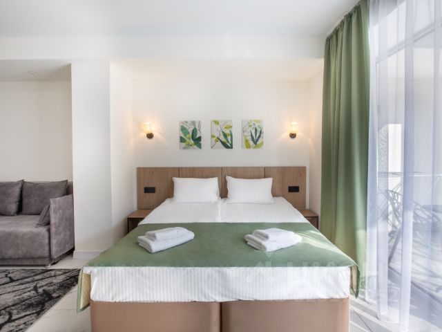 Санаторно-курортный комплекс "Лес" современный комплекс Южного берега Крыма. Он расположен в одном из самых живописных мест Крымского полуострова "Профессорском уголке" города Алушта. Тихий район в стороне от дорог, шума и скопления людей, с удобными галечными пляжами и набережной. Уникальный крымский климат, обилие зелени, море и горы создают особые условия для отдыха и оздоровления. Комплекс открыт для гостей круглый год. В нем расположены комфортабельные номера с просторной спальной зоной и видовыми террасами на парк. Одним из главных преимуществ является наличие кухни в каждом номере. Номерной фонд комплекса состоит из 45 номеров разной категории: "Базовый", "Стандарт", "Комфорт", "Люкс Студио", "Семейный Люкс". Немаловажным является наличие системы безопасности с въездным контрольно-пропускным пунктом и видеонаблюдением. На территории комплекса расположена аквазона с бассейнами. Для любого гостя персонал сможет подобрать экскурсионную программу, забронировать прогулку по морю, спортивные развлечения. Для комфортного отдыха гостей предусмотрено размещение на оборудованном пляже, с предоставлением шезлонгов и навеса. Детские зоны, качественный сервис, доброжелательный персонал. Просторный однокомнатный номер с панорамным видом на парк. Общая площадь номера 60 м². Номер с балконом. Ванная комната оснащена душем или ванной. Оснащение номера: гардеробный шкаф, 2 односпальные кровати, 2 прикроватные тумбочки, 2 бра прикроватных, диван раскладной, столовая зона, полка для багажа, вешалка настенная, балконная мебель, TV, телефон, сейф, холодильник, индукционная плита, микроволновая печь, кухонный инвентарь, стиральная машина, сушилка для белья, фен, комплект банных полотенец, набор мини-парфюмерии, тапочки, халаты.