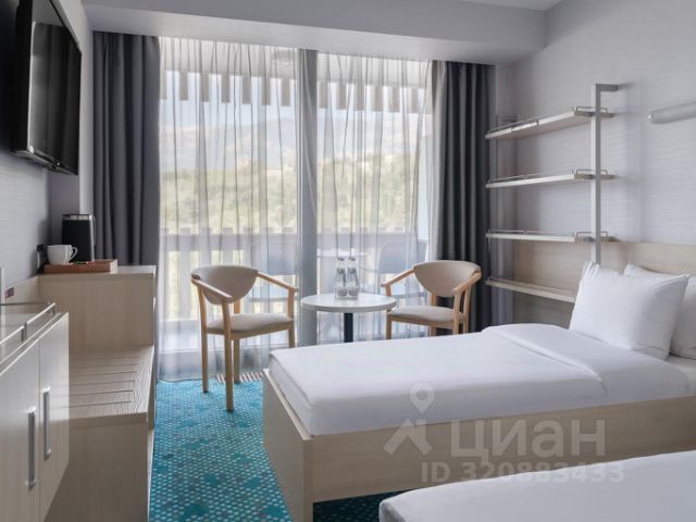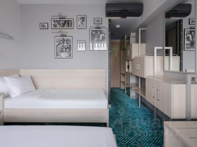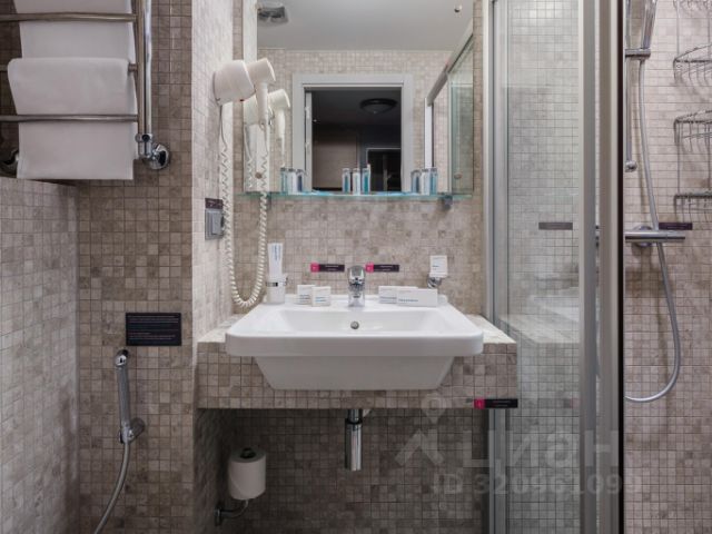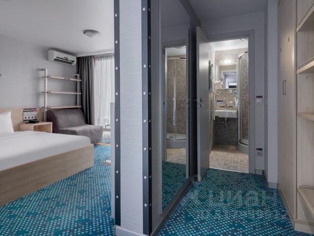 Большая кровать с ортопедическим матрасом, гардеробная зона, кресло, душевая кабина, косметика для ванны, кондиционер, Wi-Fi, цифровое TV, телефон, х