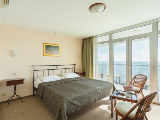 Уютные комфортабельные номера представлены категориями: "Стандарт", "Стандарт улучшенный", "Люкс", "Апартаменты", "Президентский". В каждом номере кондиционер, Wi-Fi, цифровое TV, холодильник, сейф, фен, ванная комната, удобная мебель и балкон с прекрасным видом на бескрайнее море и гряду крымских гор.