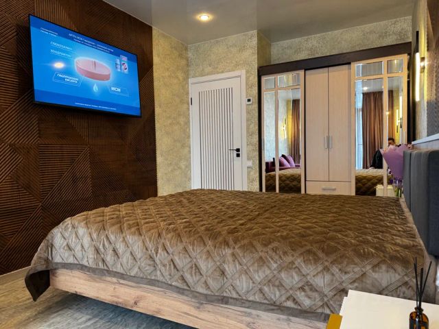 Новая квартира в премиальном жилом комплексе с бассейном Ощутите комфорт от проживания и наслаждайтесь красотой Крыма! Включено в стоимость посещение сезонного бассейна детский, взрослый, джакузи Закрытая территория для гостей комплекса с круглосуточным консьерж-сервисом, возможно бесконтактное заселение, позднее заселение и ранний выезд Смотровые площадки на крымские горы и море Оборудованные беседки, прогулочные зоны Детские игровые и спортивные площадки Вместимость квартиры 6 спальных мест Двуспальная кровать 160*200 2 раскладных дивана 140*200 Евро-двушка, общей площадью 45 квадратов с огромными панорамными окнами в пол с волшебным видом на Алушту и море, с балконом, оборудованным удобными креслами и столиком для приятного времяпровождения, расположена на четвёртом этаже многоэтажного дома премиум класса. Все для вашего комфорта: полноценные спальные места, вместительные шкафы, прачечная-гардеробная, удобная кухня-гостиная! Мы точно знаем, что должно быть для комфортного отдыха, поэтому подготовили для вас -Качественное постельное бельё и полотенца -Посуду для готовки и сервировки стола Оснащение: -Высокоскоростной wi fi -Посудомоечная машина -Стиральная машина -Большой двухкамерный холодильник no-frost -2 больших телевизора smart tv -Микроволновая печь -Варочная панель -Вытяжка -Чайник До моря и набережной ~700 метров (спустившись с горы). При бронировании на срок более 3 дней предоставим скидку, обращайтесь в личные сообщения. важно!!! Отправляйте заявку на бронирование только тогда, когда окончательно решили забронировать!!! В противном случае объявления блокируются ((( Успейте выбрать свободные даты! Мы не принимаем гостей с животными. курение в квартире строго запрещено Только на балконе