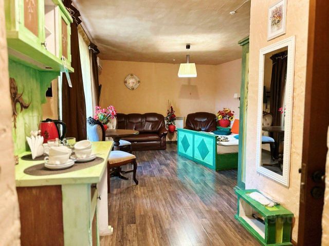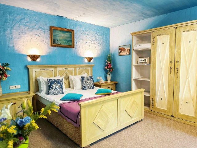 Номер студия обшит изнутри стены и потолок натуральной евровагонкой из сосны, сохранен натуральный цвет дерева, что придаёт уют и комфорт. В номере цифровое телевидение.