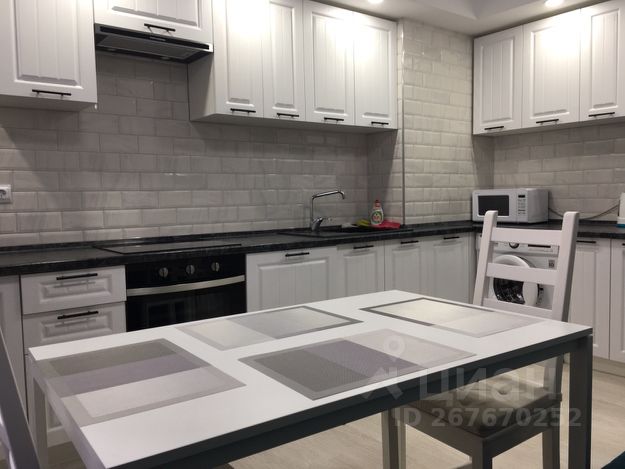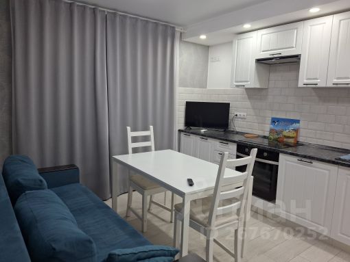 - Кухня-гостиная — кухонный гарнитур (варочная панель, духовка, вытяжка, посудомоечная машина, микроволновая печь, 2-х камерный холодильник, электрочайник, тостер, кофеварка, столовые приборы, посуда для приготовления и сервировки). Диван-кровать 2-х спальный, телевизор LG 55", TV-тумба, обеденный стол со стульями, кондиционер.