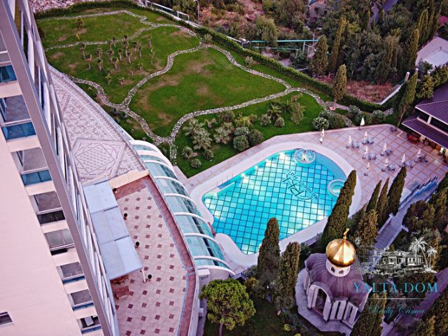 Апартаменты в 4* Резиденции & SPA Гурзуф Ривьера с прямым панорамным видом на море и скалы Адалары, а также на лазурное морское побережье Южного берега Крыма. Инфраструктура комплекса: