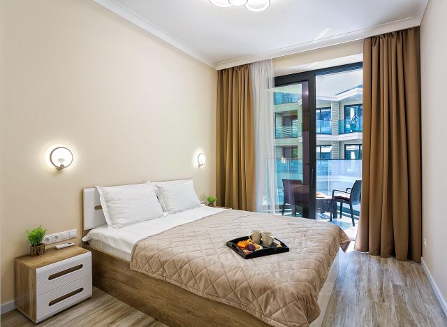 В квартире имеется WI-FI, 3 кондиционера в каждой комнате и на кухне, автономное отопление -двухконтурный газовый котел, дополнительно имеется бойлер, три плазменных телевизора, два из них SMART, кабельное телевидение 71 канал, стиральная машина, микроволновая печь, газовая плита, утюг, гладильная доска, фен. Кухонной утвари и посуды много, в т.ч. металлические и керамические джезлы. Постельное белье, полотенце для рук в ванной, на кухне и банные полотенца для каждого лица. Имеется балкон с креслами и столикками, где можно курить, развешивать белье, наслаждаться чаем или кофе.