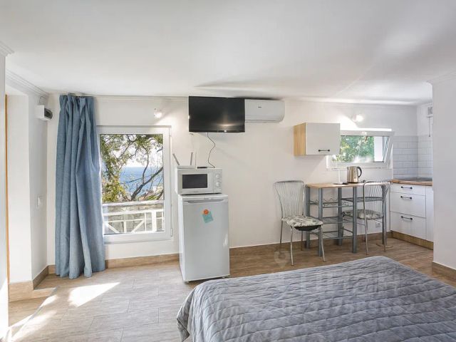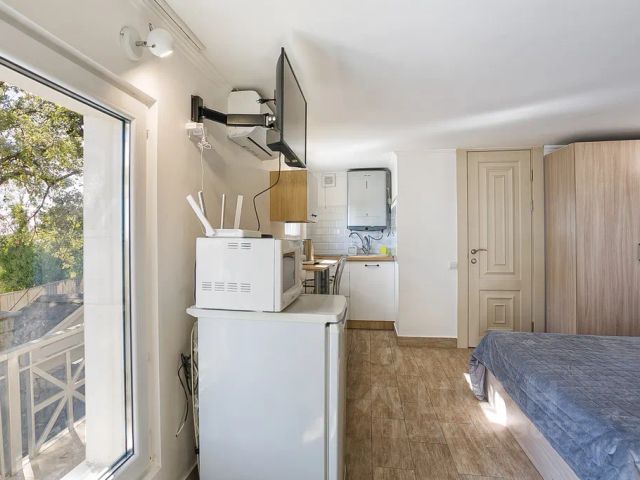 Квартира с видом, расположенная на 3-м этаже с видом на море в районе Ливадийского парка и рассчитанная на семью до 3 человек. Без домашних животных!!! Балкон с видом на море и горы. Парковка авто на площадке под домом.