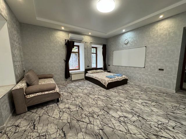 Есть собственный дворик, где растут цветы, киви, виноград, хоста, пальмы и т. д. Можно пожарить шашлык, можем предоставить коптильню для горячего копчения. Для шашлыка и коптильни предоставляем дрова, шампуры, сетку. Квартира имеет два отдельных входа. Один через коридор в комнату и второй из кухни сразу на улицу, что добавляет удобства если Вы решили отдыхать во дворе - не придется носить продукты через комнату.