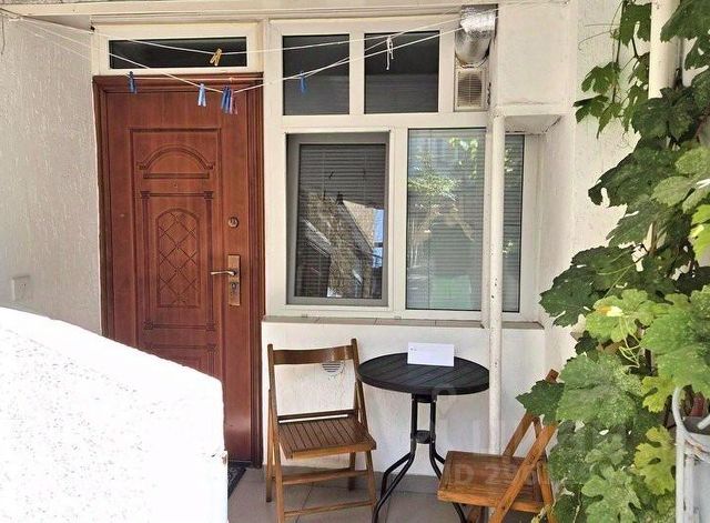 - терраса (выход из кухни-гостинной) мебель - два кресла, диван, два столика. Пол террасы облицован натуральным камнем - травертин. С террасы открывается вид на море, бассейн и детскую площадку. Предоставляется постельное белье, полотенца для пользования в апартаментах.