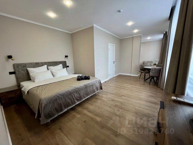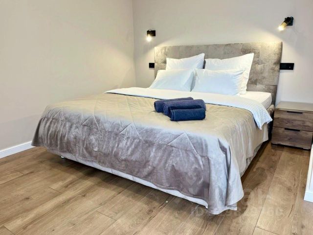 Общая площадь апартаментов 52м2, балкон застеклен, кухня совмещена с гостинной,спальня отделена раздвижной системой санузел. Апартаменты оборудованы всем необходимым для комфортного проживания наших гостей,а именно: