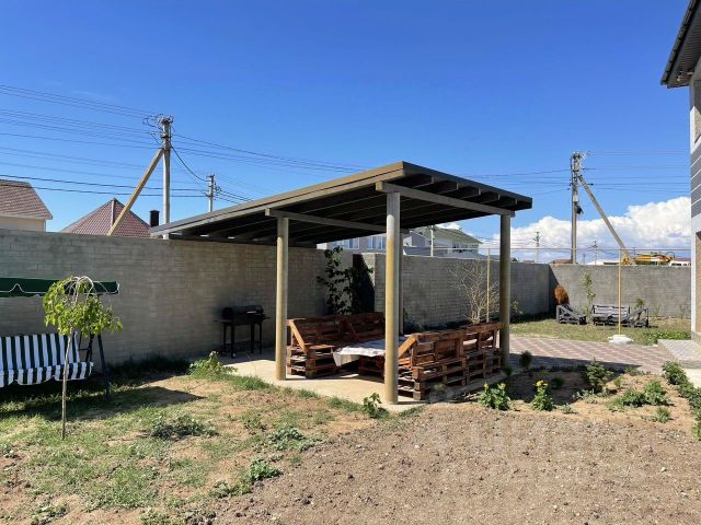 Сдается новый дом на длительный срок от месяца. Находится он в 7 км от г. Евпатория, до моря 400м. Открытый пляж и набережная у санатория Чайка. Рядом с домом в пешей доступности есть 4 магазина и пункт выдачи Вайлдбериз. Также рядом с магазинами есть 2 кафе с доступными ценами. До Евпатории ходит регулярный автобус номер 8. Остановка рядом с домом в 50 метрах. Дом оснащен новой техникой в каждой комнате и современной мебелью сделанной по дизайн проекту. 1 комната- это кухня-гостиная. Для удобства в кухне есть посудомоечная машина, кофеварка, микроволновая печь, духовка, варочная панель, вытяжка, чайник с сенсорным управлением, большой встраиваемый холодильник, вся необходимая посуда и приборы. По центру кухни стоит большой круглый стол и 4 мягких стула. В гостиной расположен двуспальный угловой диван- 200х160 в разложенном виде, большой вместительный комод и телевизор. Шкаф стоит на входе с боковым зеркалом. В каждой комнате установлен кондиционер, который работают как на холод, так и на тепло. Также установлены радиаторы для тепла в зимний период. В комнате панорамное окно с выходом на террасу. В ванной комнате расположена стиральная машина, бойлер на 100 литров, радиатор электрический, тропический душ, большое зеркало с освещением и раковина с тумбой, а также вентилятор и окно для проветривания. В доме есть сушилка для белья, гладильная доска, утюг, фен и пылесос. В спальне расположена большая двуспальная кровать с ортопедическим матрасом, шкафы для хранения по бокам от кровати, комод переходящий в туалетный столик, зеркало большое и маленькое, телевизор и кондиционер. Над кроватью есть полочка и светильник, шторы блэкаут. В спальне панорамные окна с выходом на террасу. На крытой террасе расположена садовая мебель из искусственного ротанга с мягкими матрасами и подушками, для приятного времяпровождения во дворе дома. И есть шторы, чтобы укрыться от непогоды. Есть каркасный бассейн, собирается по желанию гостей. . .