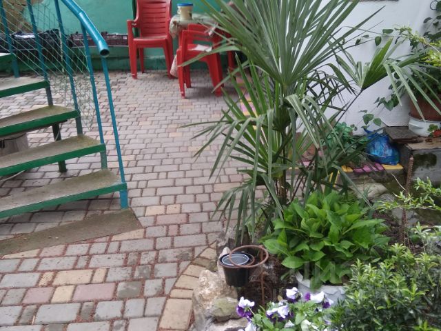 Участок перед домом -частично замощен плиткой, двор озеленен (имеются хвойные и лиственные деревья - ливанский кедр, дубы и тп). Соседи приветливые неконфликтные.